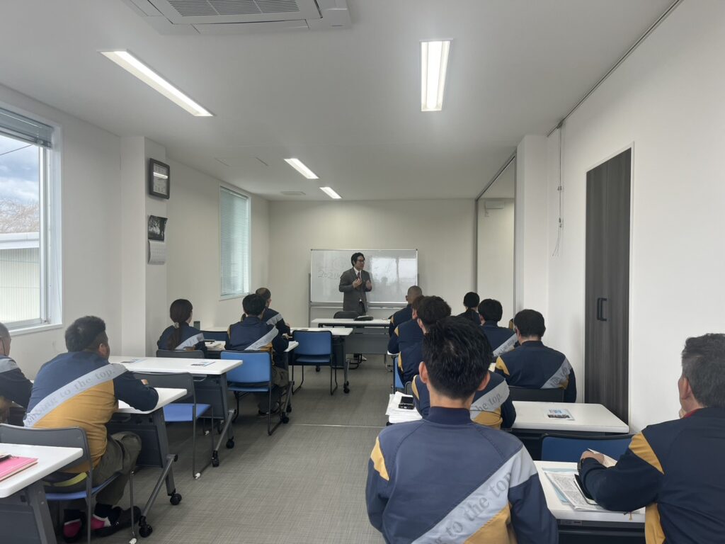 研修では、朝礼を単なる連絡の場ではなく、教育の場・方向性を共有する場として活用していくことの大切さについて、改めてお話いただき、自分自身の「良い習慣」や「悪い習慣」を書き出し見つめ直す時間もあり、日々の小さな行動の積み重ねが、仕事や職場環境に大きく影響することを考える機会となりました。